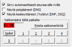 -nappi palauttaa sakkopaikan tilan takaisin kirjaamattomaksi. Se tarkoittaa ERI asiaa kuin nolla-sakkoa. Kisan lopussa ei kenelläkään saa enää olla kirjaamattomia sakkopaikkoja (NA), paitsi keskeyttäneillä/poisjääneillä.