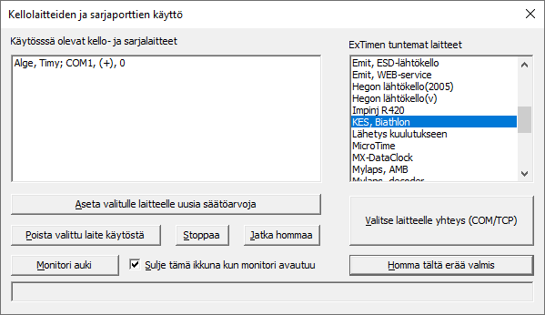 Automaattitauluja ei taida olla muita kuin Kurvisen kääntyvät taulut. ExTime tuntee ne ulkoisena laitteena Nämä taulut liitetään ExTimeen aivan samoin kuin mikä tahansa ulkoinen kellolaite valikosta / löytyvän laiteluettelon avulla. Liitäntäväylänä käy sekä sarjaportti (COM:) että TCP/IP-yhteys. Se työasema, joka kuuntelee Kurvisen taulujen liikennettä, on muistettava asettaa lähettämään tapahtumat myös eteenpäin verkon muille asemille. |