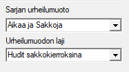 -valikosta -kohdasta avautuu kilpailussa käytettävien sarjojen luettelo. Klikattua sarjaa käytetään myös perussarjana, kun kisaan lisätään uusi sarja tässä samassa näytössä.
