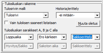 Nettitulosteet, varsinkin livetulosteet ovat korvanneet paperitulosteet ja onhan nettitulosteissa paljon paremmat säätömahdollisuudet. Ei olla kiinni paperiarkin leveydessä eikä korkeudessa ja värejäkin voidaan käyttää paljon vapaammin. Tuossa äärimmäisenä oikealla on yhden listan määrittely ja keskellä sen Sakkoerittely-sarakkeen tarkempi määrittely. Tämän tarkemman määrittelyn avulla voidaan vaikka koko nettitulosteen kieli kääntää vaikkapa ruotsiksi kirjoittamalla joka sarakeen otsikot halutulla kielellä. Tuon listamallin tulostusnäyte löytyy täältä. Sen lähdekoodia tutkimalla selviää mm.
