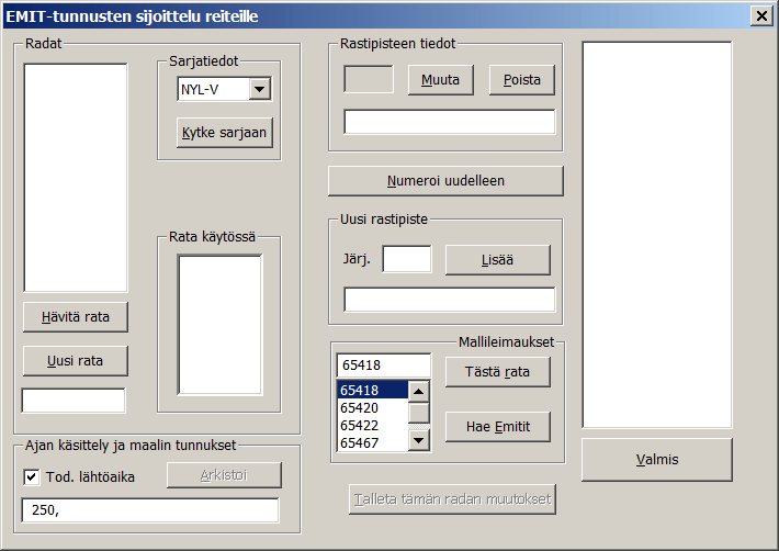 tässä kentässä.) Nämä kapulojen asettamiset joukkueille on hyvä tehdä ennen kisan alkua ja myös lähdössä on varmistuttava siitä, että kukin joukkue varmasti saa oikean EMITin käteensä.