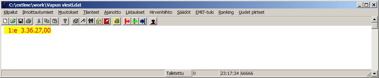 Kun luettua EMIT-kapulaa ei löydy miltään joukkueelta, EMITistä löytynyt aika tulee näyttöön pikku e:llä varustettuna, eikä tietenkään mitään kilpailijatietoja ole mukana.