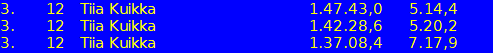 8:00.1 (4.) 6.25 m/s 31:27.7 (4.) 6.36 m/s 12.000 km