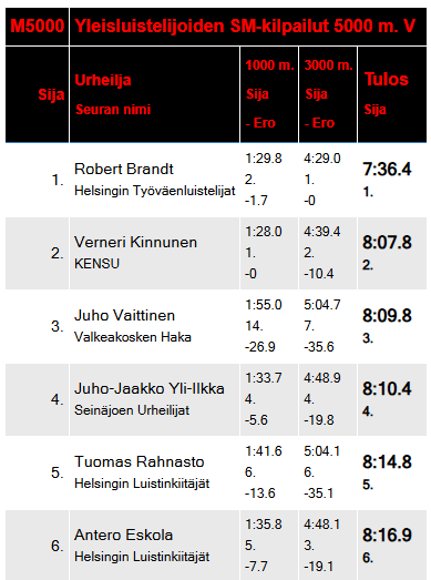 8:34.0 (1.) 5.84 m/s 50:08.1 (1.) 5.98 m/s 18.000 km