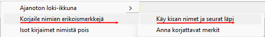 Erikoismerkkejä varten löytyy samasta -valikosta myös uusi toiminto . Toiminnossa on kaksi vaihetta: