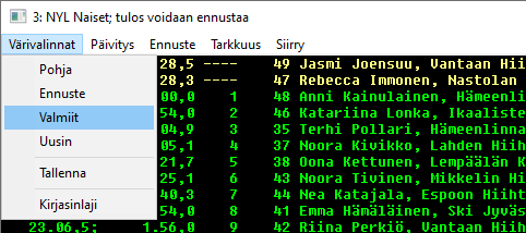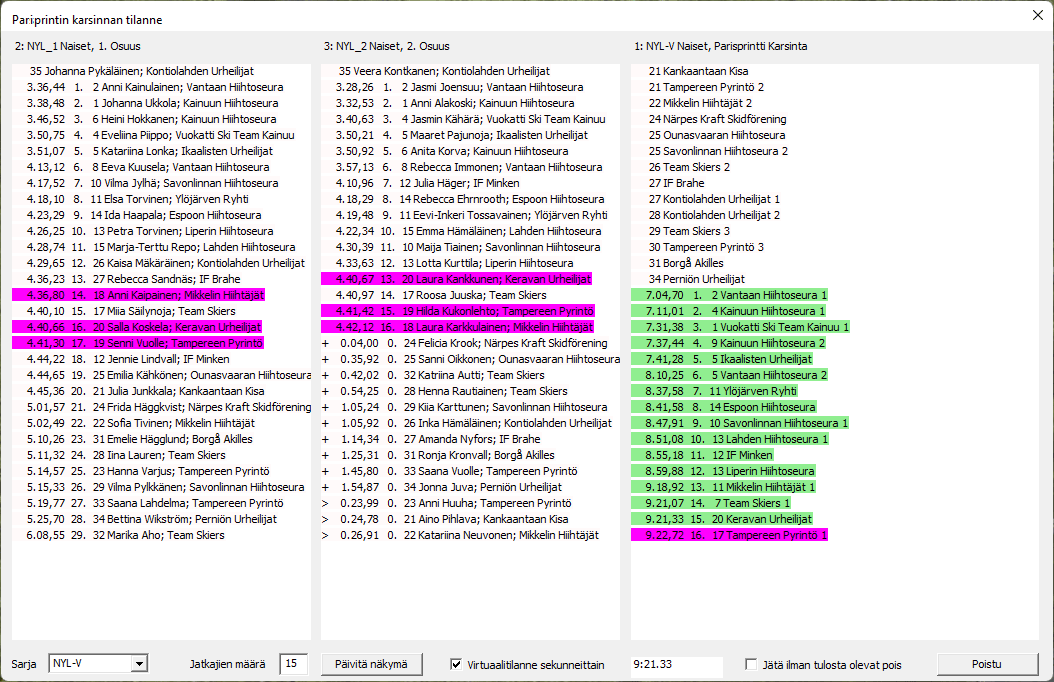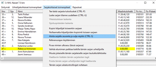 Valikko vaihtaa sitten jatkuvan laskennan kohteena olevan sarjan joko kilpailujärjestyksessä seuraavaan tai edelliseen sarjaan. Toki jatkuva laskenta voi olla käynnistä useassa sarjassa yhtäaikaa, ihan riippuen kuuluttajan koneessa kiinniolevien näyttöruutujen määrästä ja koosta ja vähän koneen laskentatehosta.
