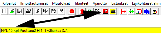 Kisa-aika näkyy normaalisti pienellä fontilla ExTime-ikkunan alareunan keskellä. Sitä edeltää teksti Muutoksia tai Talletettu sekä muutoksien lukumäärä. Muutokset saadaan talletettua, kun painetaan F2-näppäintä tai korpun kuva-ikonia työkalurivillä (kolmas vasemmalta). Syytä tehdä silloin tällöin kisan aikana myös kuuluttajan koneella. |
