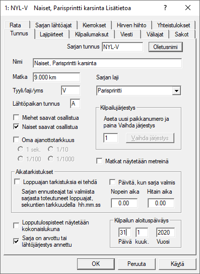 Toki oikea sarja on valittava myös, oletuksena ExTime hakee valmiiksi ensimmäisen parisprinttisarjan. Ja vielä toistoa, ExTime sallii näiden asetusten muuttamisen vielä tässä näytössä. |
