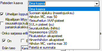 Tässä yllä näkyvät erilaiset sarjavaihtoehdot ja alla taas eri pistelaskentavaihtoehdot