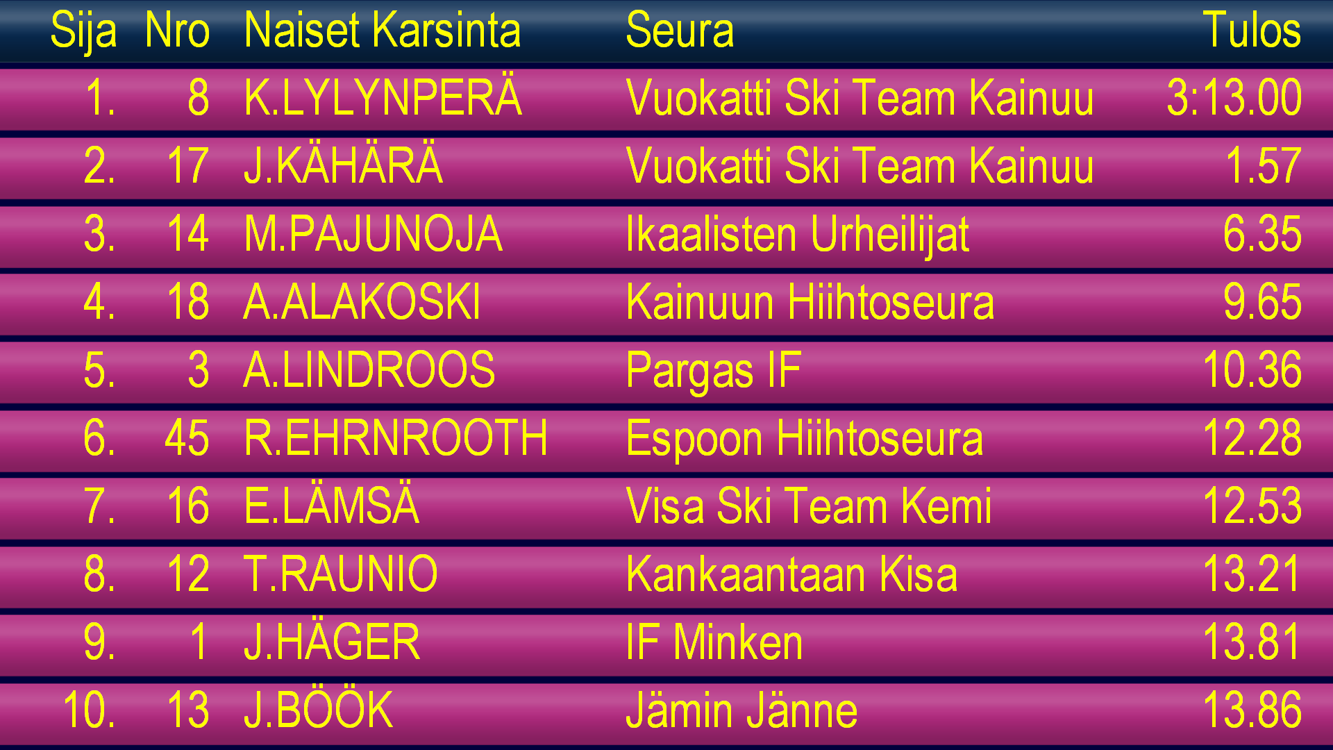 Kultiman Arin tekemällä taustakuvalla ja siihen sopivalla (käsin annetulla) rivin korkeudella tulostaulun parhaiden näkymästä saatiin näin näyttävä. |