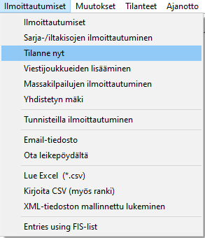 Mukana on myös urheilijaeritttely. Ajat ovat aitoja. Kohdistus on siis Maa/Piiri/Luokka-kentän mukaan, jonne olin laittanut tiedon, mikä on ko. urheilijan joukkue. Ja Seuratilanne-vakioteksti oli vaihdettu (Säädöt/Asetusarvot/Käännökset), samoin kuin sarjaluetteloon viittavan linkin nimi: [otsikot] Kisansarjat="Kilpailusarjat" Sarjat="Sarjaluetteloon tästä linkistä" kesken="Kaikki eivät ole maalissa, puuttuu" TOV="Kaikki ovat maalissa, lopputulokset" Välituloste="Tämän hetken tilanne" Seuratilanne="Joukkuetilanne" ... |