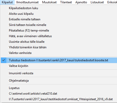 Normaalitulosteissa ensin valitaan kirjoitin tai tiedosto-tulostus, suoritetaan halutut tulostukset ja valitaan seuraava tulostustiedosto, jotta varsinkin tiedostoon ohjattuja tulosteita päästään käyttämään.
