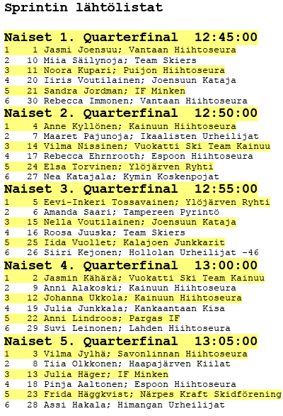 Sarjan tulokset/lähtölistat
